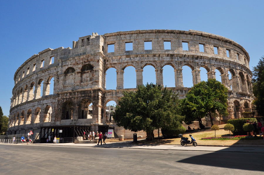 Nach dem Frühstück steht eine fantastische Panoramaküstenfahrt nach Pula, ganz im Süden der Halbinsel Istrien gelegen, auf dem Programm. Zahlreiche Dörfer und malerische Ausblicke säumen Ihren Weg. Die Hauptattraktion ist ohne Zweifel das Amphitheater, fünftgrößte Arena der Welt. Nach der Außenbesichtigung beginnen wir mit der Altstadtführung. Anschließend haben Sie ausreichend Freizeit, um durch die Altstadt zu bummeln. Danach geht es in das reizvolle Hinterland, wo sich zahlreiche geschichtsträchtige Städtchen befinden, u. a. Pazin mit seiner mittelalterlichen Burganlage und das auf einem Hügel gelegene Motovun, ein weithin sichtbares venezianisches Städtchen Stimmungsvoll wird es beim istrischen Bauernabend mit Essen, Wein, Folklore, Musik und Tanz.